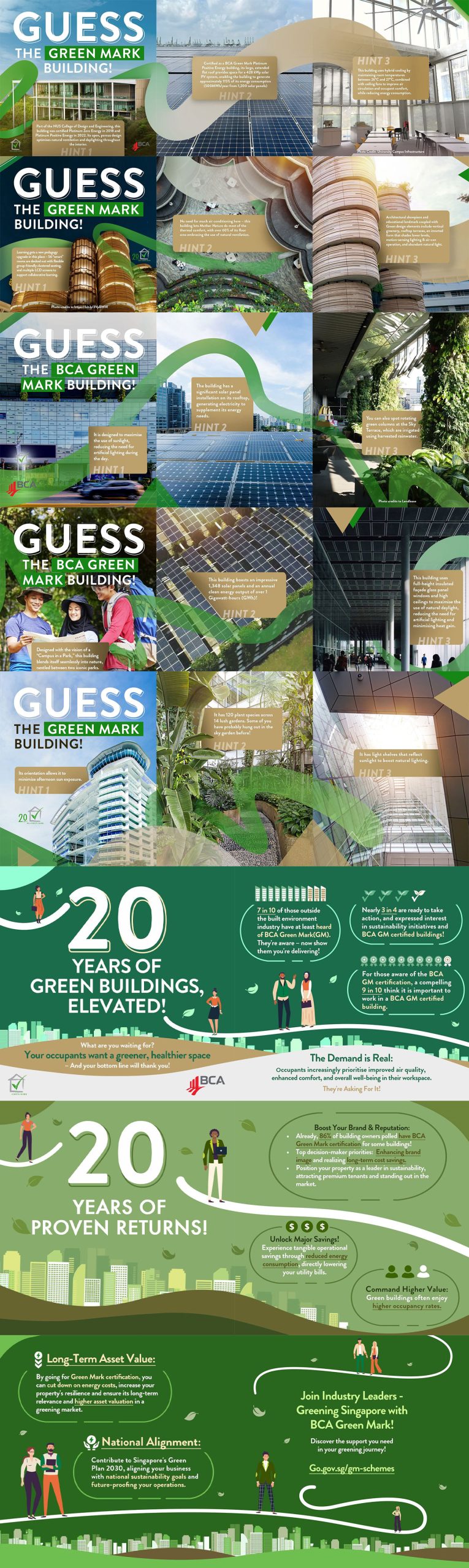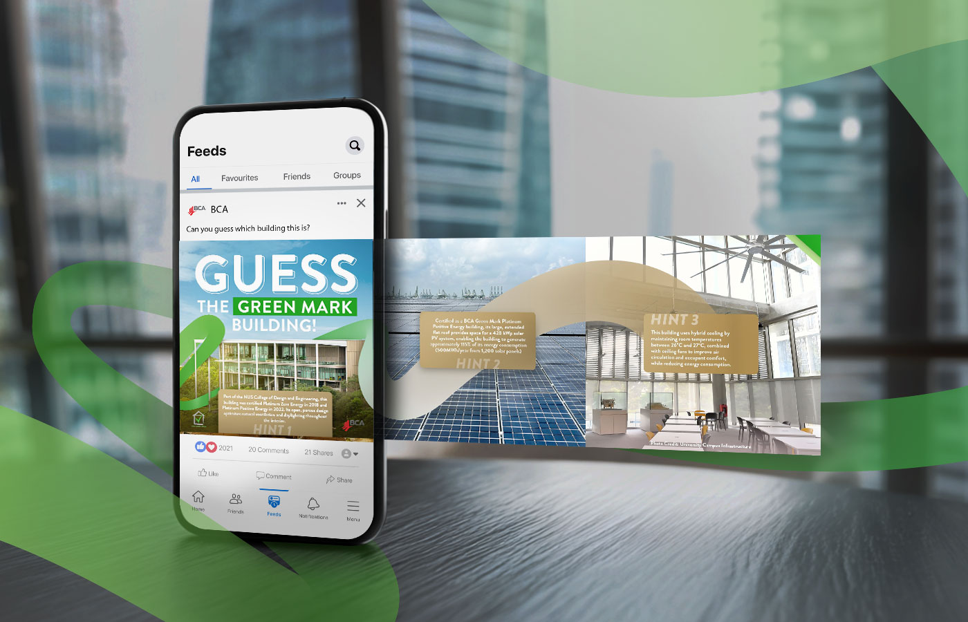 This interactive series transformed certified buildings into familiar, recognisable landmarks. By inviting the public to guess the featured building, it turned sustainability into a simple, engaging touchpoint. The content helped people associate Green Mark with physical spaces they encounter in daily life, making the idea of “green buildings” more accessible and relevant.