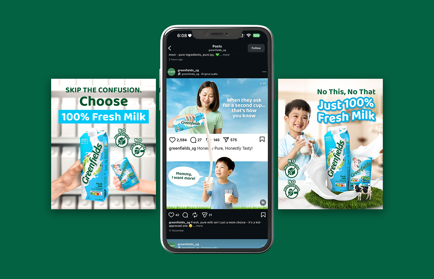 The more concise the message, the easier it is to repeat and remember. By reducing the campaign down to one clear statement, we ensured consistency across all creators, formats, and touchpoints. This clarity helped position Greenfields as different from the perception that “all full cream milk is the same,” which the campaign sought to shift.